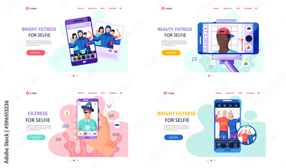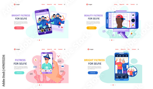 Wall mural : Bright filters for selfie screen interface photo frame in social media application with portrait of