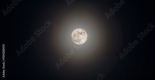 The watermark will not be included on Wall mural.: Bright full moon surrounded by a halo in a dark sky representing celestial phenomenon