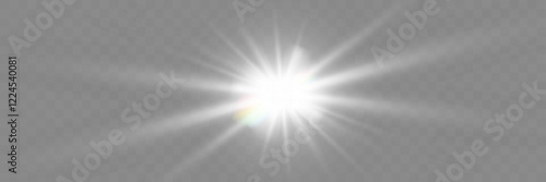 The watermark will not be included on Wall mural.: Bright glowing light burst with soft edges and subtle rays on a transparent background, suitable for