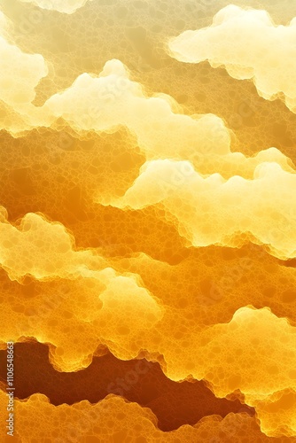 The watermark will not be included on Wall mural.: Bright golden cloud-like structures with a glowing honeycomb texture, creating a dreamy and soft abs