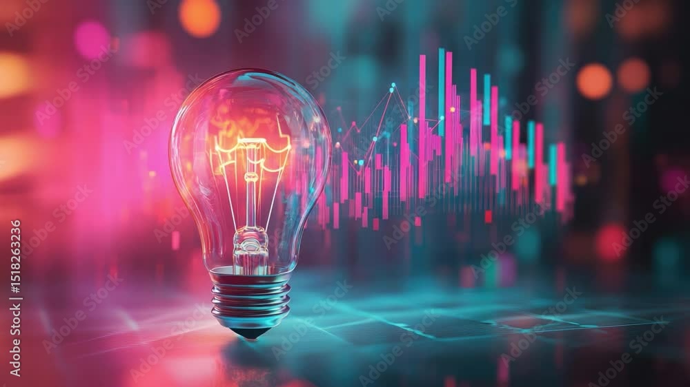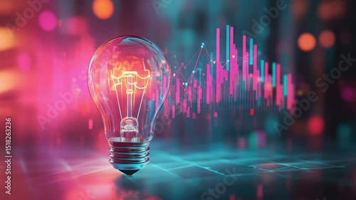 Bright light bulb with colorful graph and bokeh background illustration for creative concepts in innWall mural