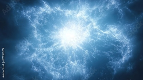Wall mural bright light exploding from a blue and white cloudy center. suggests creation or energy release. ide