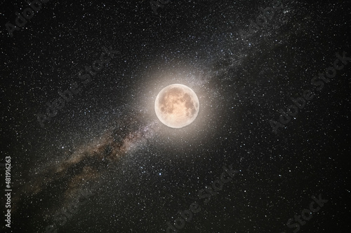 Wall mural bright milky way galaxy and full moon. night starry sky background. - Wall murals Wall mural bright milky way galaxy and full moon. night starry sky background. - Wall murals