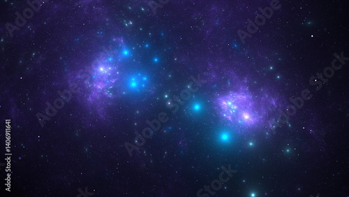 The watermark will not be included on Wall mural.: Bright nebulae radiate energy and color across the vast night sky - luminous stars twinkle in deep sp