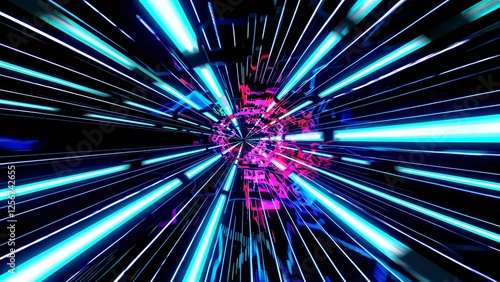 Wall mural bright neon lights creating a mesmerizing tunnel effect with dynamic motion blur, evoking the sensat - Wall murals Wall mural bright neon lights creating a mesmerizing tunnel effect with dynamic motion blur, evoking the sensat - Wall murals