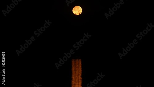 The watermark will not be included on Wall mural.: Bright round moon with reflection on water at night - - tilt up