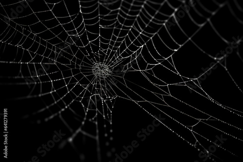 Bright spider web on a dark black background created with the help of artificial intelligenceWall mural