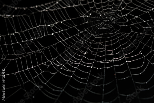 Bright spider web on a dark black background created with the help of artificial intelligenceWall mural