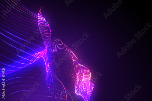 The watermark will not be included on Wall mural.: Bright wavy background - glowing dots and lines - neon light - wave element for design - smooth particle