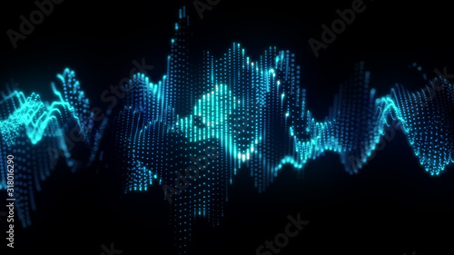 The watermark will not be included on Wall mural.: Bright wavy background - glowing dots and lines - neon light - wave element for design - smooth particle