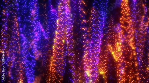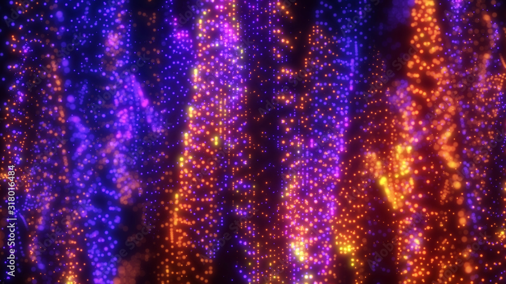 The watermark will not be included on Wall mural.: Bright wavy background - glowing dots and lines - neon light - wave element for design - smooth particle