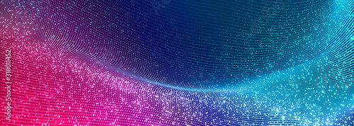 Wall mural : Bright wavy background - glowing dots and lines - neon light - wave element for design - smooth particle