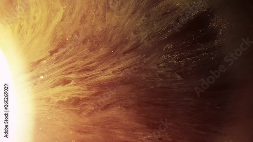Bright yellow star with moving dust particles and background - visual graphic background of deep spacWall mural