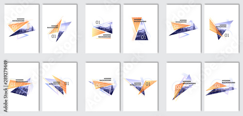 The watermark will not be included on Wall mural.: Brochure design set - flyer layout template - modern triangles background - vector presentation slide -