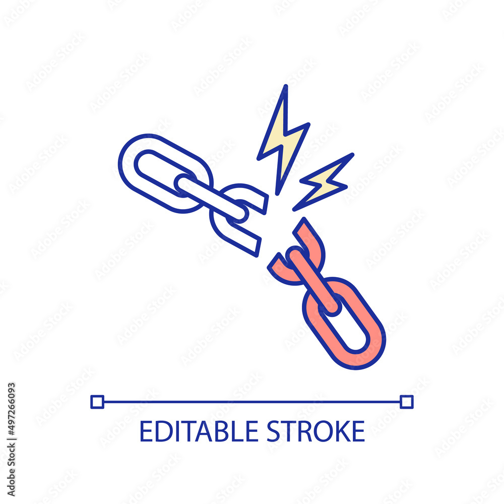 Wall mural broken chain rgb color icon. freedom and slavery end celebration. weak link in team problem. isolate