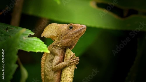 Wall mural brown basilisk also the striped basilisk or common basilisk, basiliscus vittatus is basilisk lizard