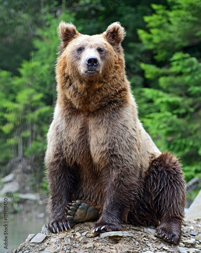 The watermark will not be included on Wall mural.: Brown bear in the woods