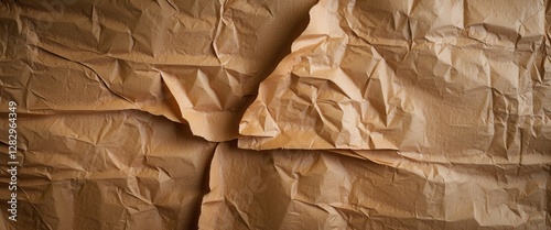 Wall mural brown crumpled paper texture background with deep creases and folds for textured design and artistic