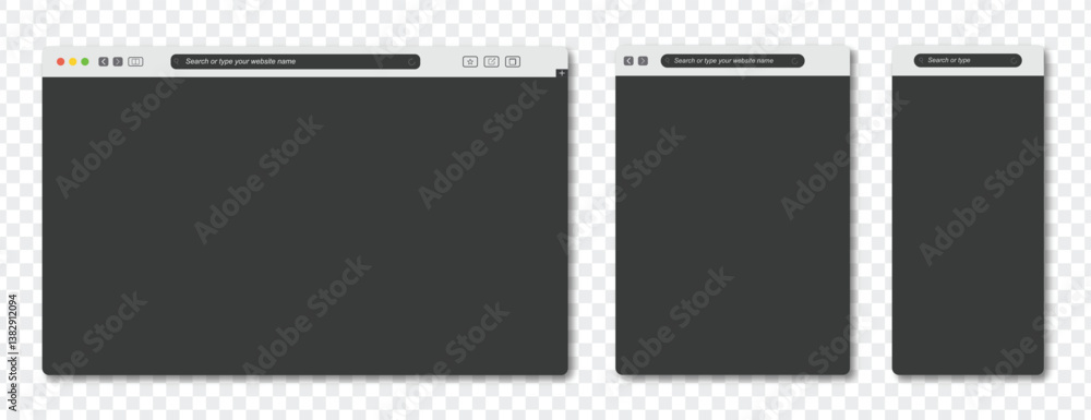 The watermark will not be included on Wall mural.: Browser mac or window web view mockup - tablet and mobile phone - website template vector frame - web s