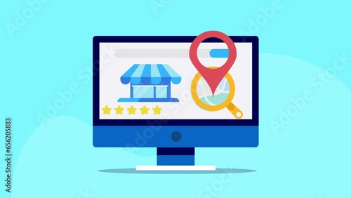 Wall mural browsing business location map on search engine page, retail store with customer review on computer  - Wall murals Wall mural browsing business location map on search engine page, retail store with customer review on computer - Wall murals