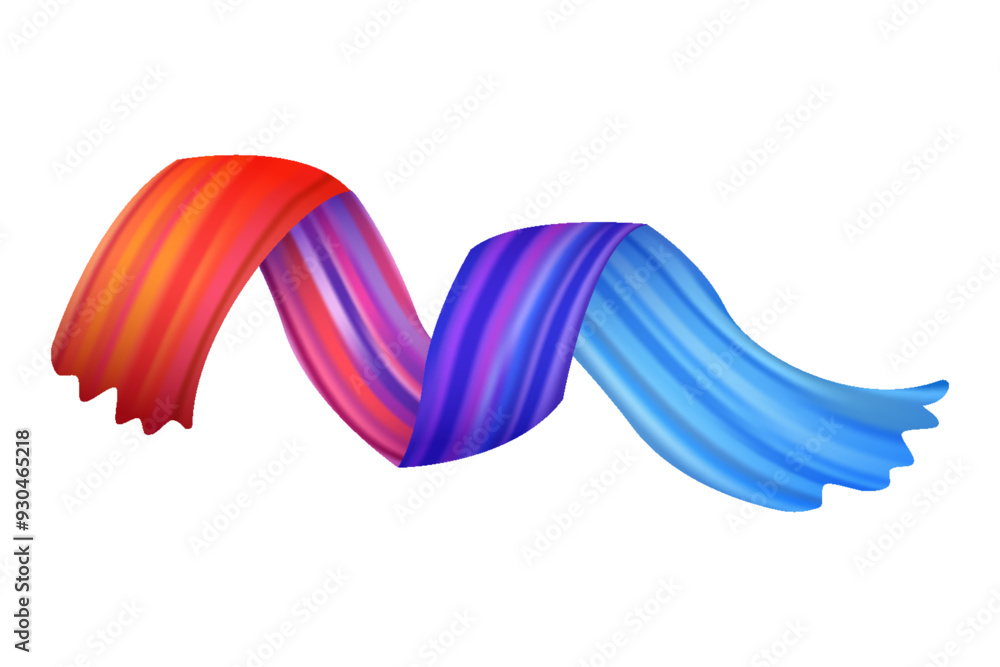 The watermark will not be included on Wall mural.: Brushstroke multicolor gradient texture - brush ribbon isolated on white - design element of wavy curl
