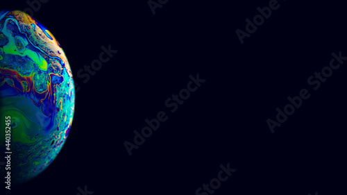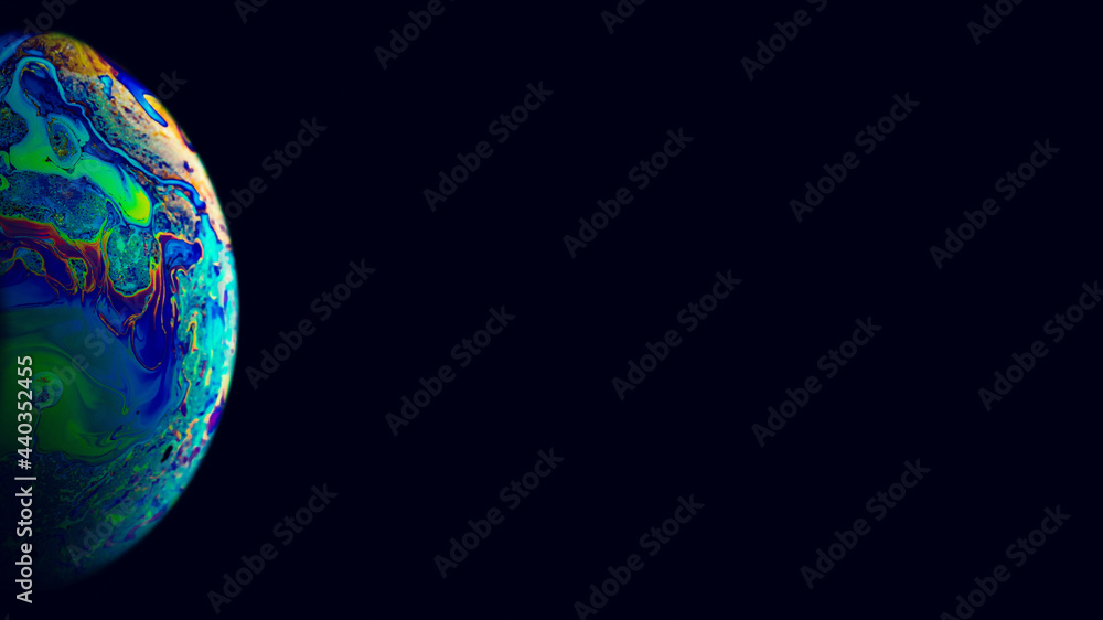 Wall mural bubble color. globe planet earth in galaxy universe space with abstract sun on black background. col