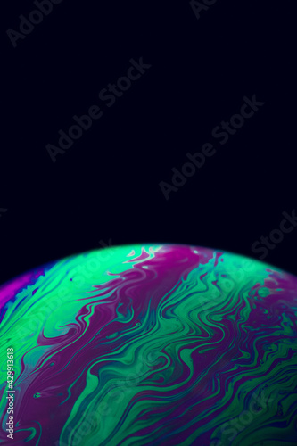 Bubble macro - abstract galaxy background with globe planet earth in universe space with sunlight on Wall mural