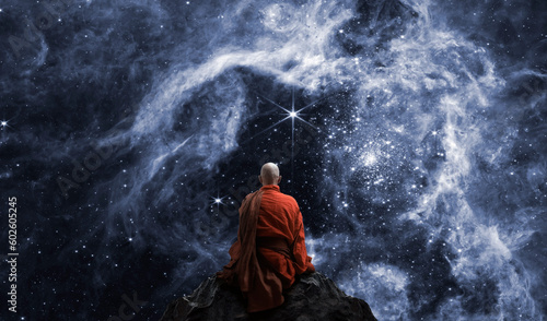 The watermark will not be included on Wall mural.: Buddhist monk looking at the universe - ai generative