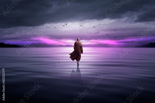 The watermark will not be included on Wall mural.: Buddhist monk looking at the universe - ai generative