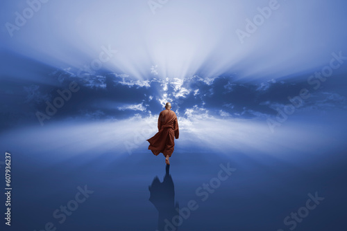 The watermark will not be included on Wall mural.: Buddhist monk looking at the universe - ai generative