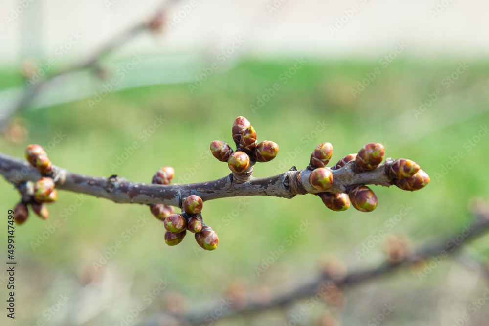 The watermark will not be included on Wall mural.: Budding buds on a tree branch in early spring macro