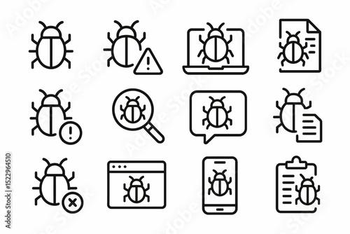 Wall mural bug icons collection: software development and debugging symbols - Wall murals Wall mural bug icons collection: software development and debugging symbols - Wall murals