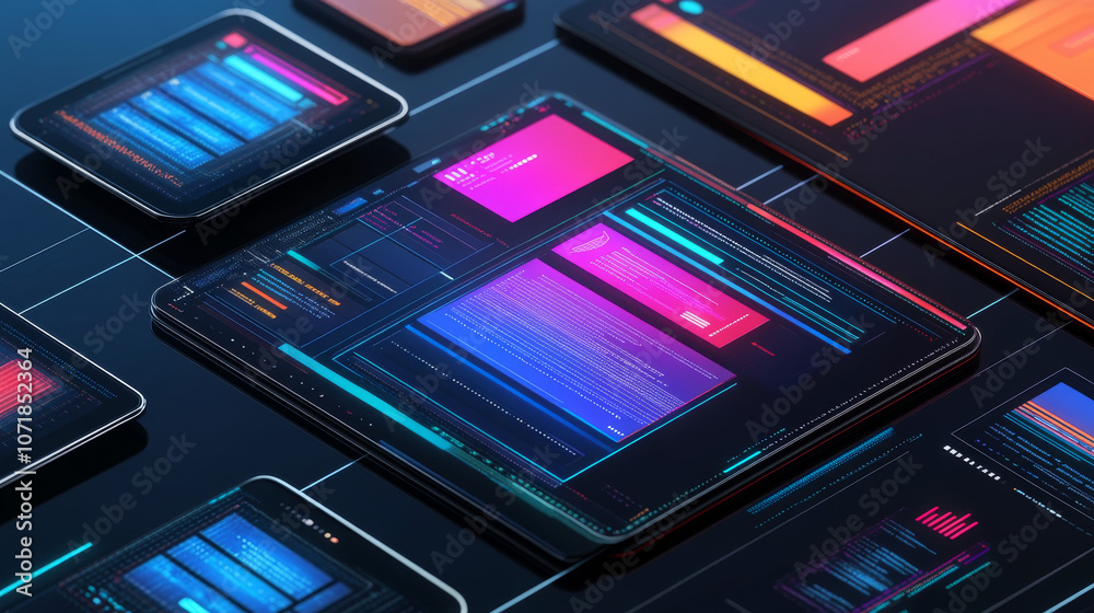 Wall mural : Building websites and apps that work well on all devices, like phones, tablets, and computers - this
