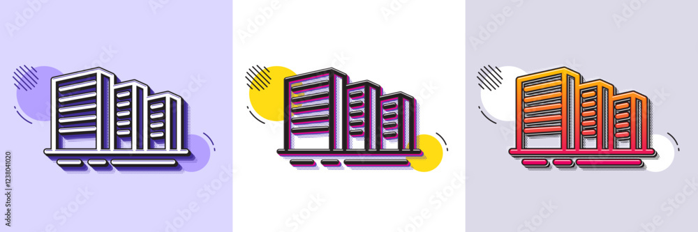 Wall mural : Buildings line icon - halftone dotted pattern - gradient icon with grain shadow - city architecture sig