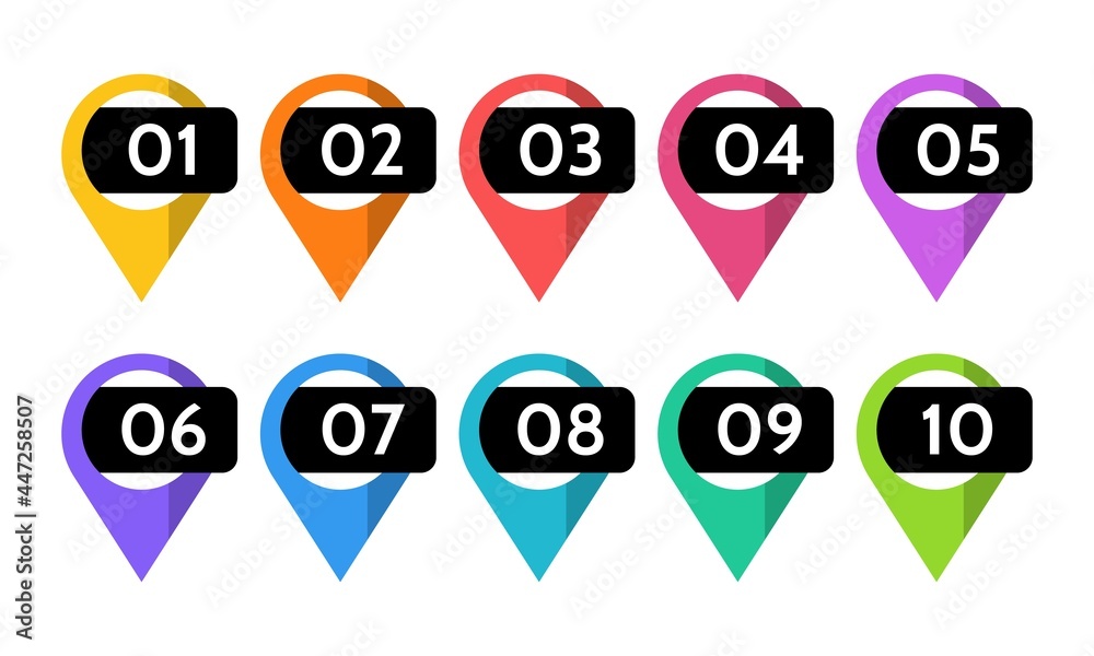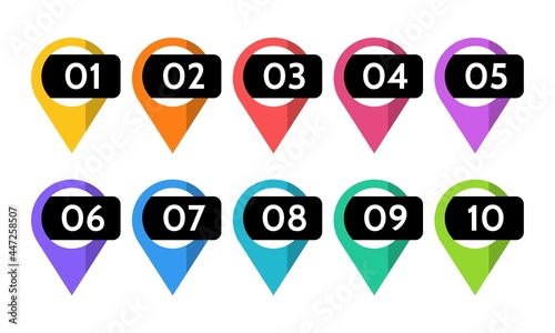 Wall mural bullet points, info markers. icon arrow set. number flags 1 to 10 flat design list, button, isolated - Wall murals Wall mural bullet points, info markers. icon arrow set. number flags 1 to 10 flat design list, button, isolated - Wall murals