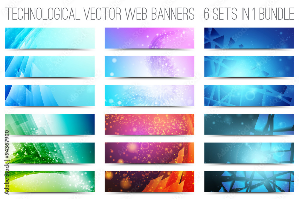 Wall mural : Bundle of 18 abstract digital tech web banners - vector design elements - internet technology backgrou