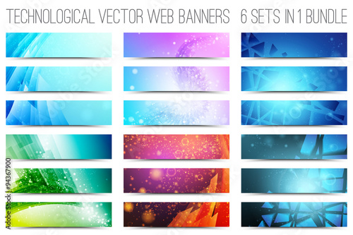 The watermark will not be included on Wall mural.: Bundle of 18 abstract digital tech web banners - vector design elements - internet technology backgrou