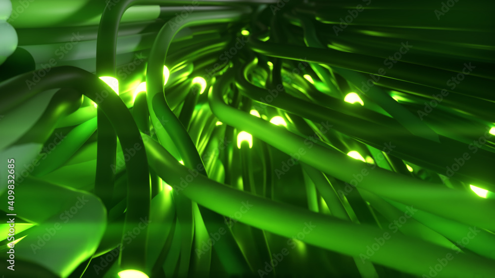 Wall mural : Bundles of abstract optical fiber lines - bright light signals quickly transmit data for high speed i