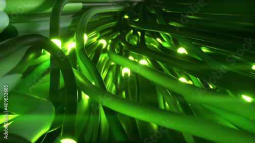 Wall mural bundles of abstract optical fiber lines. bright light signals quickly transmit data for high speed i