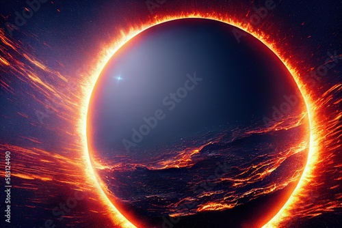 Burning falling asteroid and planet collision background digital illustration - , created with generatWall mural