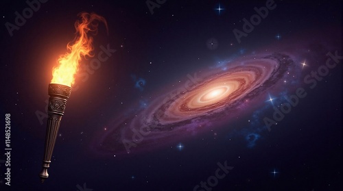 The watermark will not be included on Wall mural.: Burning torch against colorful night sky - generative ai