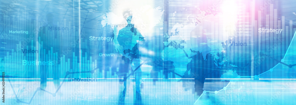 Wall mural business abstract background double exposure graph, chart and diagram. world wide map and. global bu - Wall murals Wall mural business abstract background double exposure graph, chart and diagram. world wide map and. global bu - Wall murals