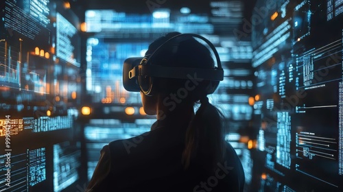 Wall mural business analytics big data analysis technology concept on vr screen. analysis data. ultra realistic - Wall murals Wall mural business analytics big data analysis technology concept on vr screen. analysis data. ultra realistic - Wall murals