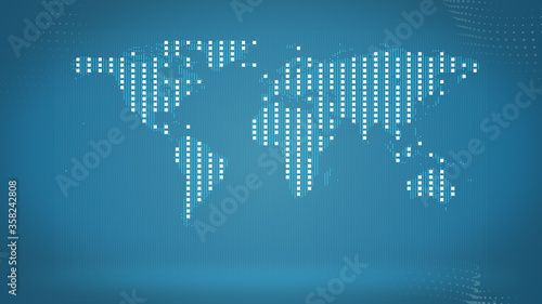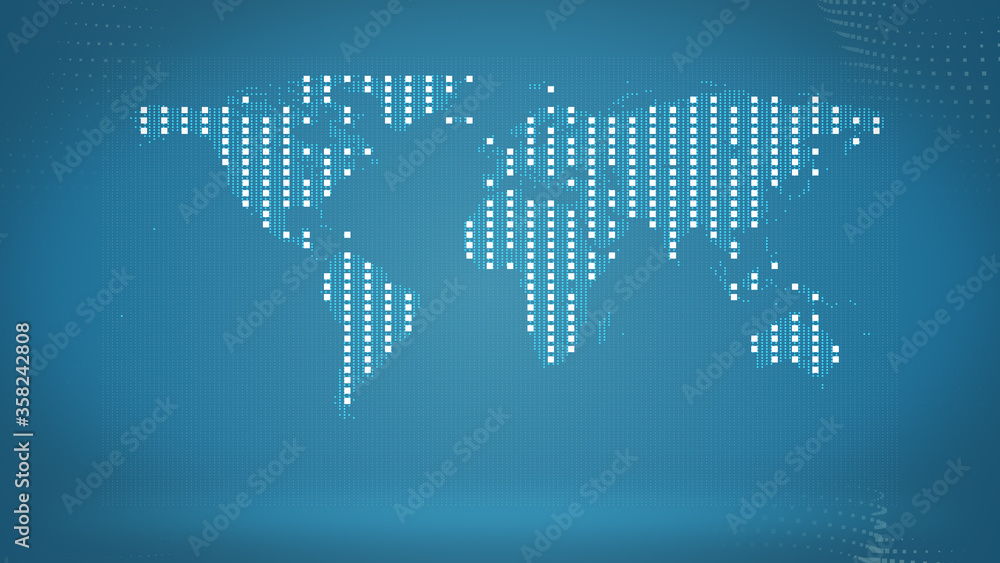 Wall mural business and communications background. a map with squares texture illuminating the light over dark