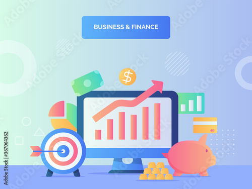Wall mural : Business and finance concept increase chart on computer screen background of target piggy bank money
