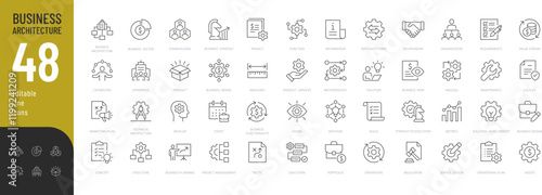 Business architecture line editable icons set - vector illustration in modern thin line style of busiWall mural