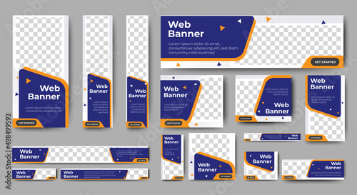 Wall mural business banner design web template set, horizontal header web banner. blue and white. cover header