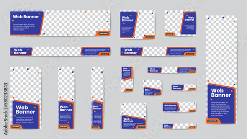 Wall mural : Business banner standard size in horizontal and vertical rectangle, and square template set for web