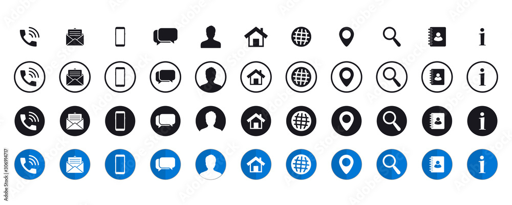 Wall mural : Business card icon collection - contact information icons set - web icons set - bundle set of contact u