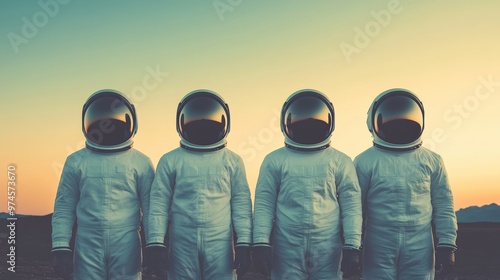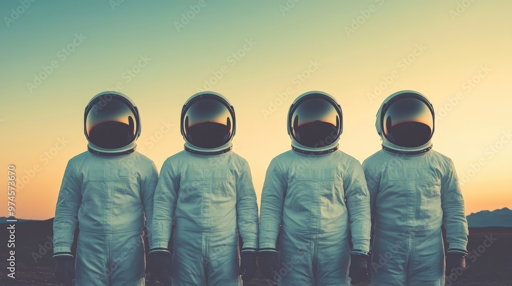 Wall mural business concept in minimal of business team of astronauts discussing strategy in space, corporate g - Wall murals Wall mural business concept in minimal of business team of astronauts discussing strategy in space, corporate g - Wall murals